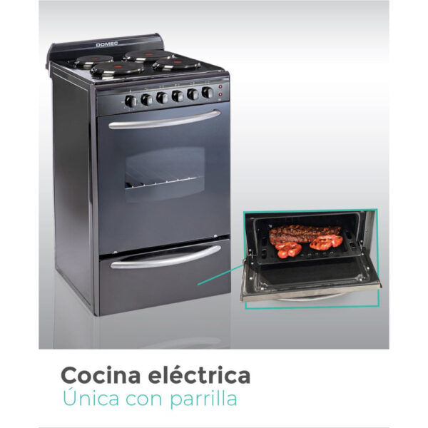 Cocina eléctrica, 4 hornallas, grill, parrilla , luz, puerta visor , termostato, negra.-Tipo Gastronomico para el hogar