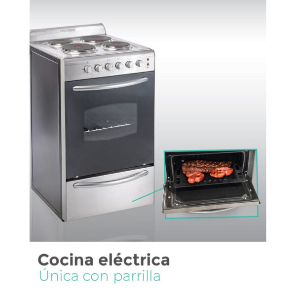 Cocina eléctrica, 4 hornallas, grill, parrilla , luz, puerta visor , termostato, Acero inoxidable.-Tipo Gastronomico para el hogar