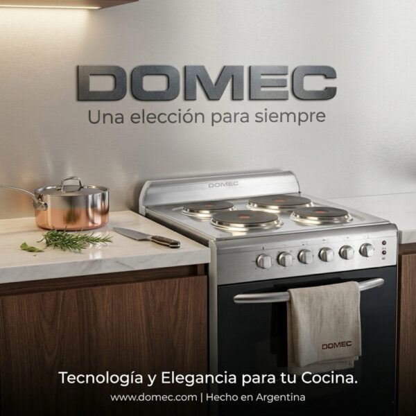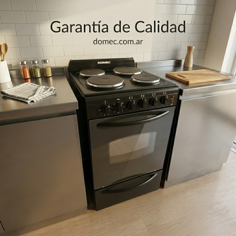 Cocina eléctrica, 4 hornallas, grill, parrilla , luz, puerta doble visor , termostato, frente Acero Inoxidable, Tipo Gastronomico para el hogar.-