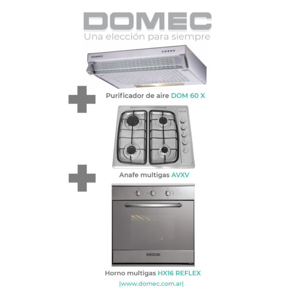 Combo Horno multigas HX16Reflex + Anafe multigas AVXV + Purificador DOM60X