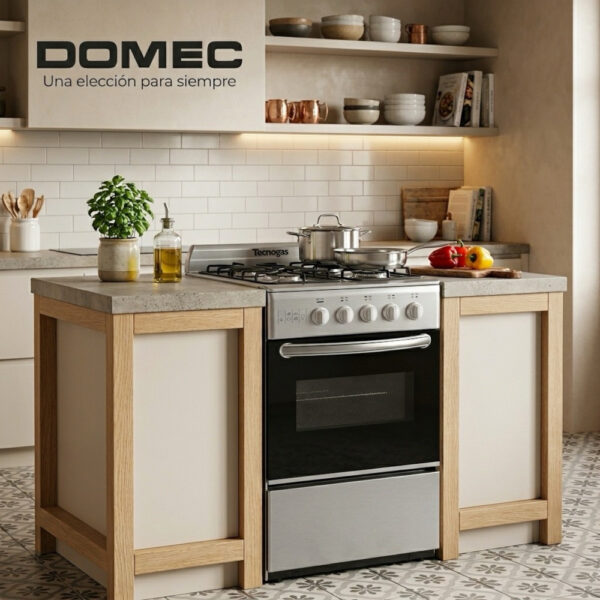 Cocina Multigas, 4 hornallas, puerta horno visor , rejillas enlozadas, válvula de seguridad en horno y hornallas, Acero Inoxidable.- Marca Tecnogas
