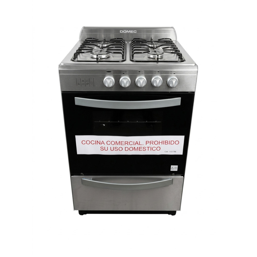 Cocina Multigas, 4 hornallas, puerta horno visor espejado, luz, encendido eléctrico, timer, autolimpiante, cajón parrilla, rejillas simil fundición, válvula de seguridad en horno y hornallas, Acero Inoxidable.-