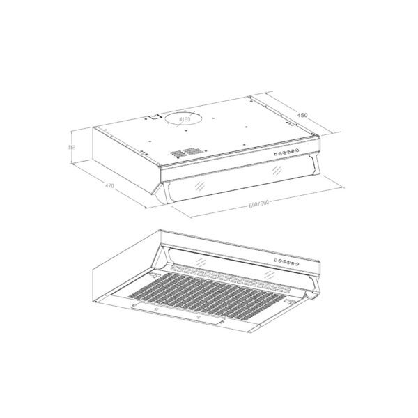 Purificador de aire, extrae y recircula, 1 motor, 3 velocidades, salida vertical, filtro antigrasa metálico, acero inoxidable